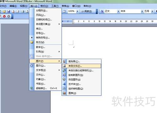 3、 在Word中点击插入菜单,选择图片下的来自文件,浏览并定位到照片存储位置,选中目标图片后点击插入按钮即可完成操作。