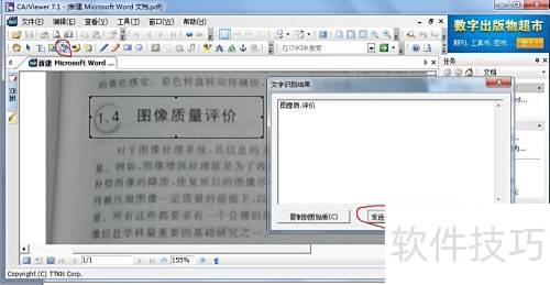 8、 在AJViewer中点击带有A字样的按钮,用鼠标在目标文字区域拖动绘制虚线框,最后点击发送到Word按钮即可完成操作。
