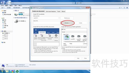 3、 打开打印机,弹出界面后点击图示中的浏览按钮进行操作。