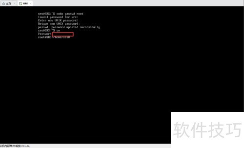 4、 输入su命令后回车,再输入root用户密码,即可切换至root账户。