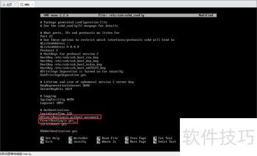 6、 将配置文件中的PermitRootLogin without-password修改为PermitRootLogin yes,以允许root用户通过密码方式登录系统,确保配置保存后重启服务生效。