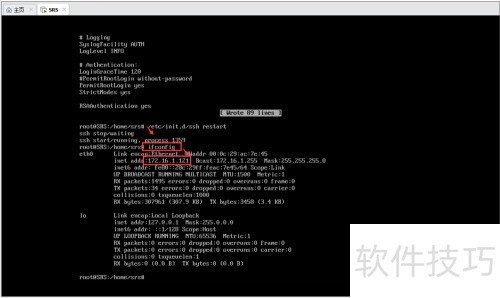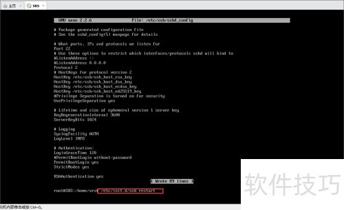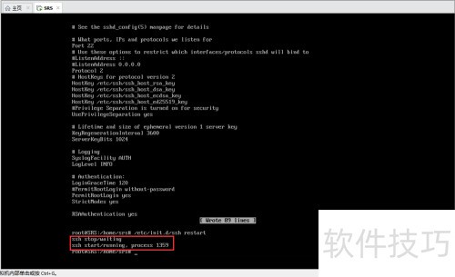 7、 通过执行/etc/init.d/ssh restart命令来重启SSH服务。