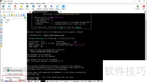 13、 在MobaXterm左侧栏点击SFTP标签,选择并上传所需文件。