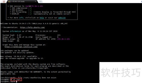 15、 进入左侧窗口,执行cd /opt切换到opt目录,再运行ls命令查看目录中的文件内容。