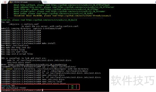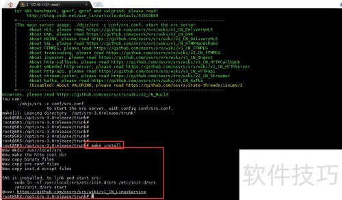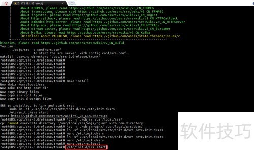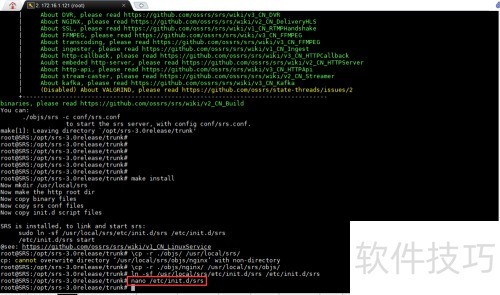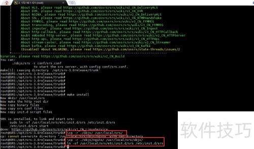 23、 通过执行命令 ln -sf /usr/local/srs/etc/init.d/srs /etc/init.d/srs 创建软链接,实现系统服务的快捷访问与管理。