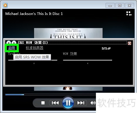 6、 微软自WMP9起便内置SRS音效,其开启方法与Windows 7系统中的操作基本相同。