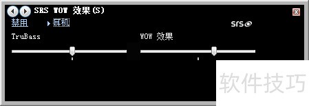 3、 在SRS WOW音效菜单中点击启用按钮,即可开启音效功能。系统默认采用大扬声器模式,支持自由切换至标准扬声器或耳机模式。同时,TruBass低音增强与WOW 3D环绕效果均可手动调节,用户可根据个人偏好灵活设置,获得理想的听觉体验。