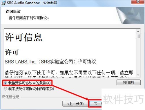 4、 必须同意许可协议才能继续安装程序。