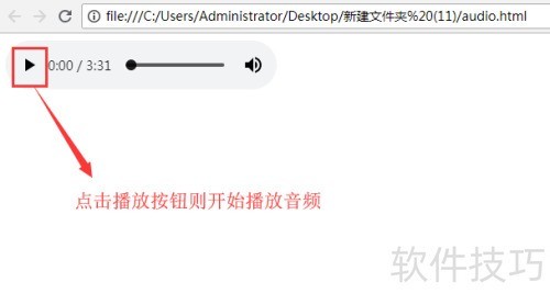 4、 用浏览器打开audio.html文件,即可使用简易音频播放器,点击播放按钮便可播放声音内容。