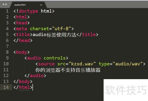 1、 创建一个名为audio.html的网页文件。