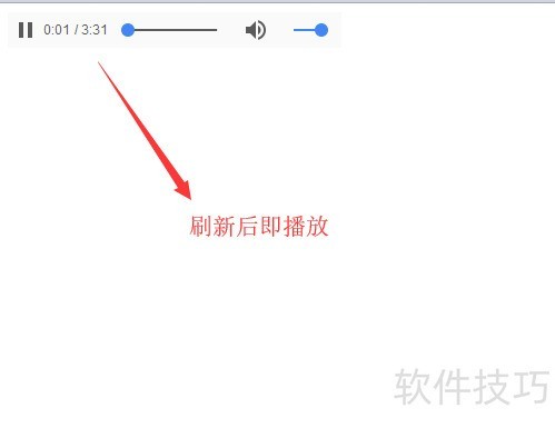 6、 接下来介绍其他属性对播放器的影响。autoplay 是音频标签的自动播放属性,设置后页面刷新时音频将自动开始播放,具体效果所示。