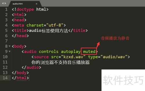7、 音频默认处于静音状态,muted用于设置静音。
