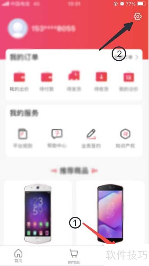 1、 打开优品拍拍应用,进入我的页面,点击右上角的齿轮图标。
