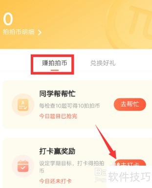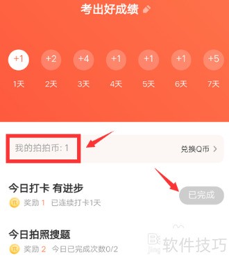 6、 打卡完成后即可领取相应拍拍币奖励。