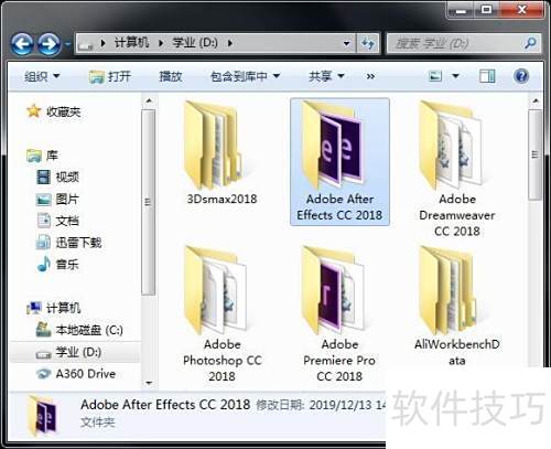 2、 在安装目录中定位名为Adobe After Effects CC 2018的文件夹(适用于Win7系统环境)。