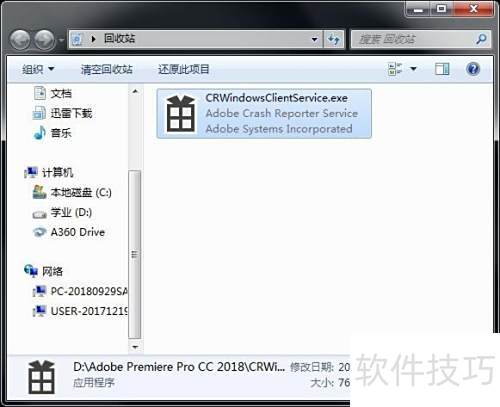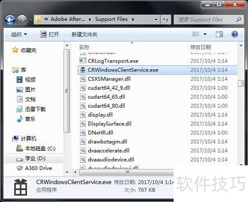 3、 进入Adobe After Effects CC 2018文件夹,定位到CRWindowsClientService.exe程序,将其删除即可完成操作。