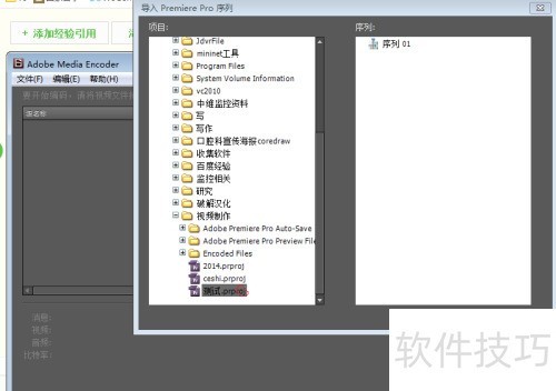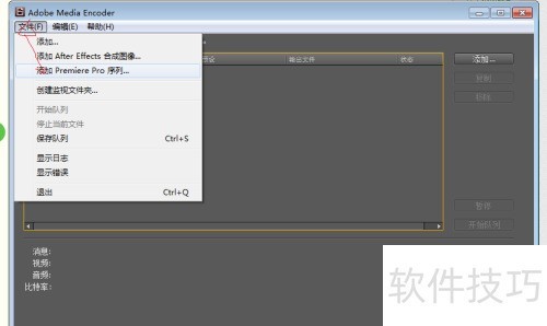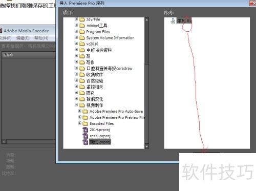 5、 在Adobe Media Encoder中,选择文件菜单下的导入Premiere Pro序列选项,操作所示。