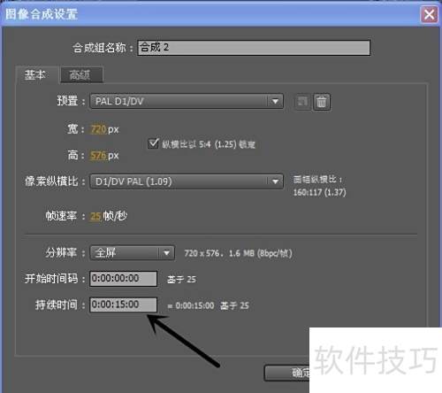 5、 在图像合成设置中调整持续时间后,点击确定按钮确认。