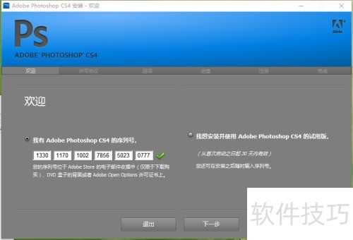 3、 输入序列号后,若其后出现绿色对勾,表示输入正确,可点击下一步继续操作。