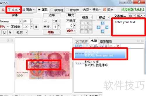 4、 点击文本选项,输入所需内容,即可添加文字水印。