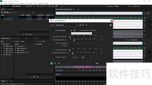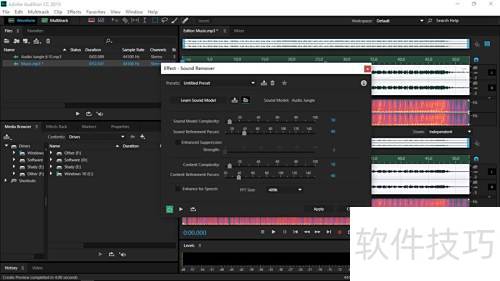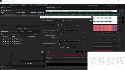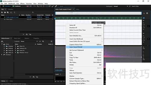 9、 返回Audition选取含水印的音乐,按第六步相同操作执行。