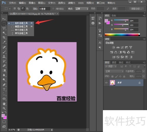 14、 打开素材,点击左侧工具栏第二个工具,从弹出菜单中选取矩形选框工具。