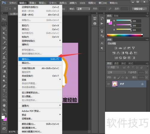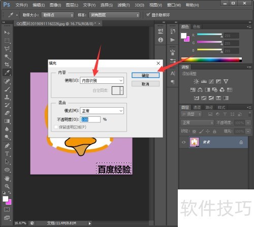 16、 选择编辑菜单中的填充功能,内容使用项选为内容识别,确认即可完成操作。