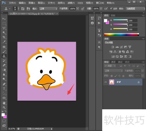 1、 启动PS软件,选择文件菜单中的打开选项,导入一张图片素材,所示。