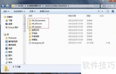 7、 将DK_System、DK_Documents和DK_Pictures三个文件夹复制到Kindle的根目录,同时务必把bin文件也复制到根目录中,确保文件完整放置。