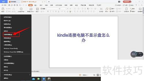 1、 将Kindle连接电脑,按下Windows键+X,从菜单中选择设备管理器进行操作。