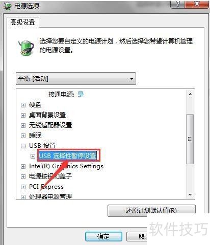 9、 进入高级电源设置,展开USB设置选项,将USB选择性暂停功能关闭,随后再连接Kindle设备至电脑即可正常识别。