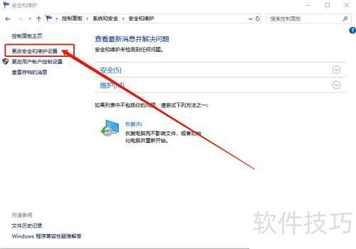 2、 点击左下角安全和维护,随后选择更改安全和维护设置进行操作。