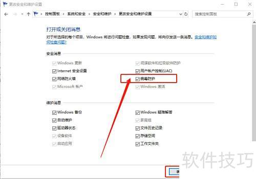 3、 取消勾选病毒防护选项后点击确定。