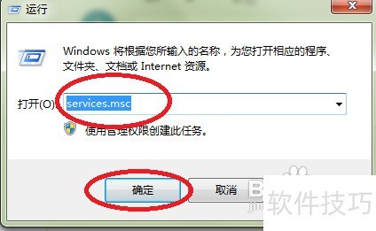 2、 在输入框中键入 services.msc 后按确定,系统将自动打开服务管理窗口。