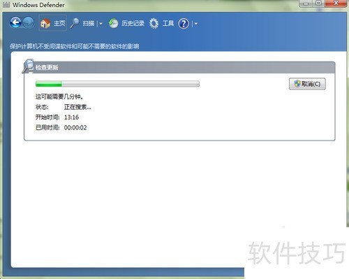 6、 开启Windows Defender后,系统会提示进行扫描,只需根据提示完成操作即可。