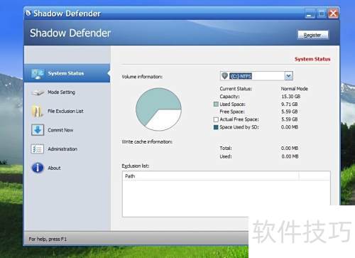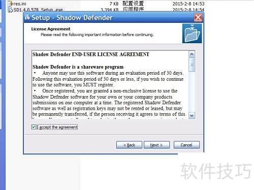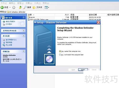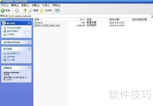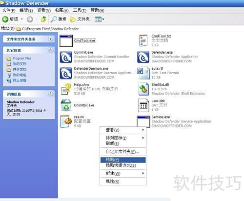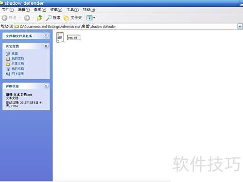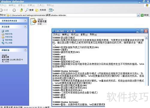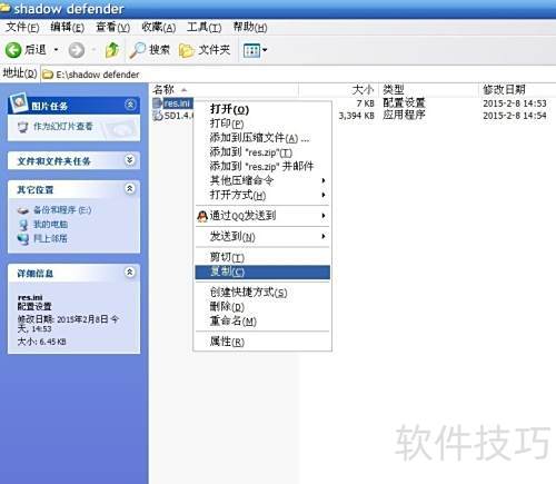 7、 进入C盘的Program FilesShadow Defender文件夹(64位系统同样在此目录),将之前创建的res.ini文件复制到该路径下即可。