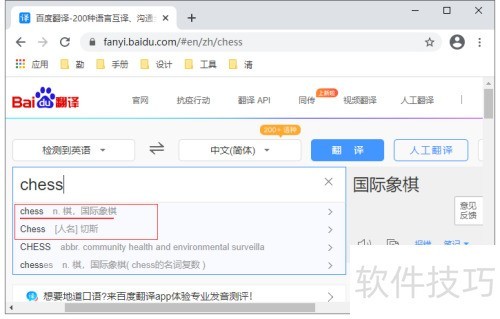 4、 点击你想查询的chess这个单词,即国际象棋。