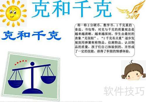 4、 在画面左侧补充克与千克的知识点,增强内容丰富性。