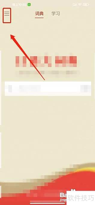 1、 打开日语大词典应用首页,点击左上角的三条横线图标。