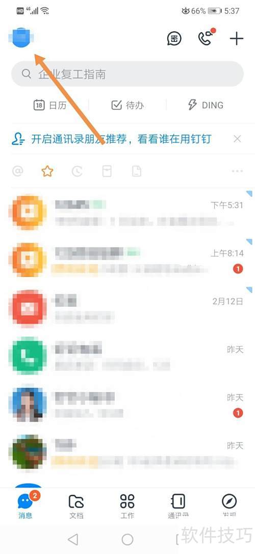 1、 打开钉钉,点击个人头像进入。