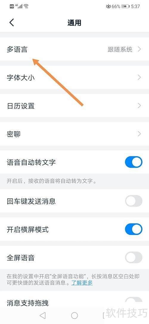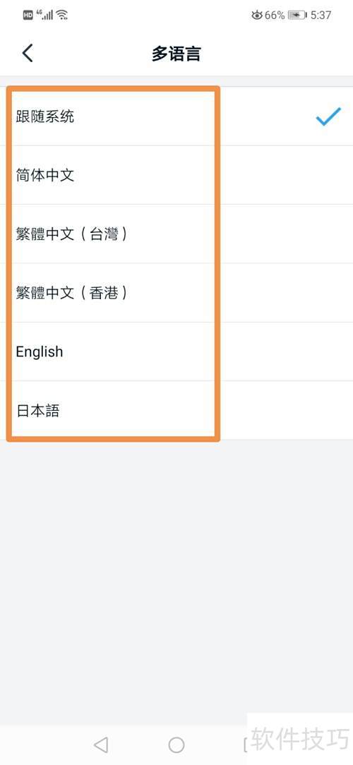 9、 点击多语言选项,选择所需语言完成切换。