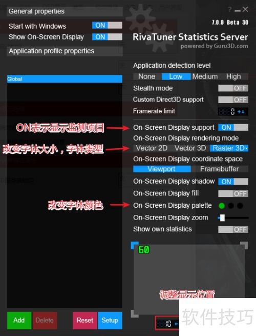 11、 如需更改字体样式、颜色或位置,请先点击OSD显示,再选择更多选项进行设置。