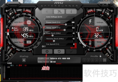 5、 启动MSI Afterburner后,点击设置图标进行配置。