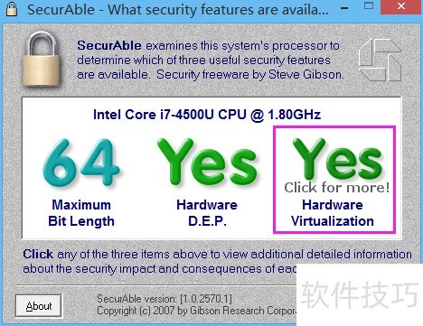2、 下载Securable检测工具(位于百度网盘第二项),运行后可检查你的CPU是否支持虚拟化技术。