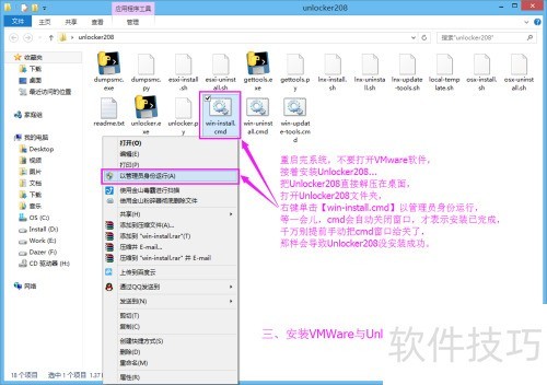 25、 系统重启后请勿启动VMware,直接进行Unlocker208的安装操作。