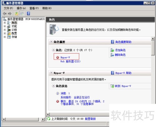 4、 在服务器管理器中安装Hyper-V,而Win8.1则通过控制面板的程序功能进行安装。