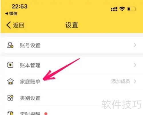 1、 打开鲨鱼记账App,进入设置,选择家庭账单功能。
