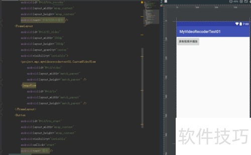 1、 采用VideoView播放camera录制的视频,避免使用MediaPlayer与SurfaceView组合方式。界面布局选用FrameLayout,内部包含VideoView和ImageView。视频播放过程中,隐藏缩略图;当处于暂停状态或初始加载时,显示预先设置的视频缩略图,确保用户体验流畅,视觉层次清晰,操作直观明确。