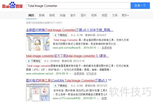 1、 通过百度搜索Total Image Converter,选择任一网站下载该软件即可。