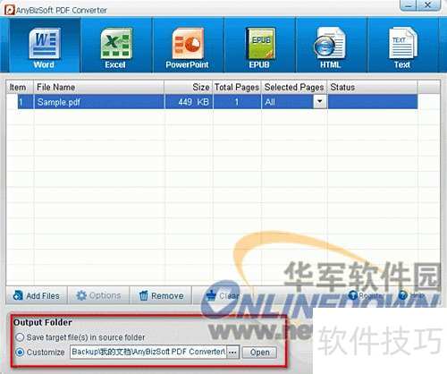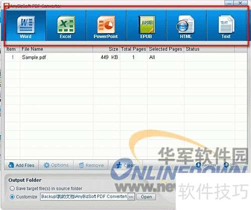 2、 第二步:软件上方显示的是支持的转换格式类型。用户在转换PDF文件前,需先选择目标格式,例如Word、Text、HTML、Excel、EPUB等多种选项。只需点击所需的格式类型即可完成设置,具体操作2所示。请根据实际需求选择合适的输出格式,以确保转换效果符合预期。